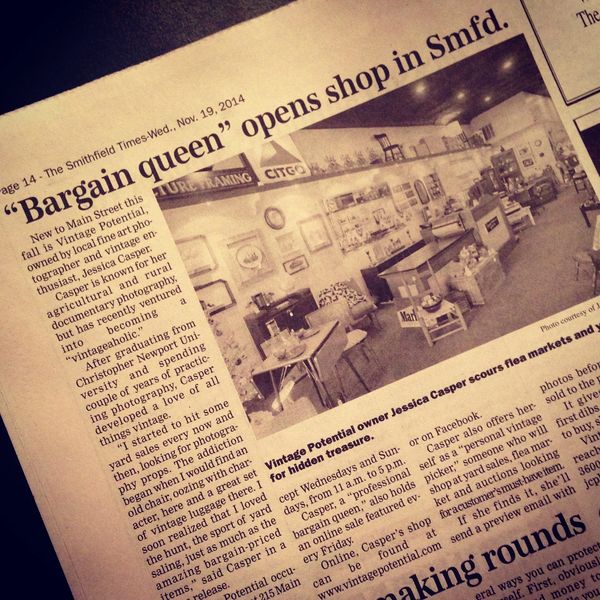 In the past, I began to offer some of my great finds for sale online as a way to make additional funds for my photography business. I had no idea Vintage Potential was going to develop from a tiny blog into having a physical storefront! I am so thankful and appreciative for those who have followed my first Vintage Potential blog posts and even purchased items in the past. Because of your love and support, my business continues to grow every day. I cannot ever say thank you enough! Because of your interest in a hometown girl who loves a good yard sale or auction, probably way too much, I get to have a career doing something I love. Thank you for visiting this website, and thanks in advance for making continued visits to the storefront at 215 Main Street in Smithfield, Virginia.